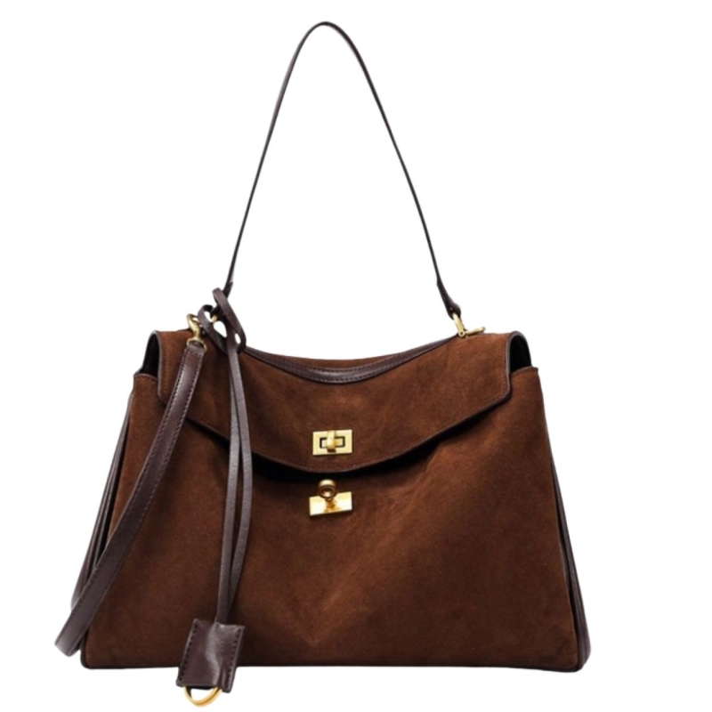 Премиальная сумка 2026 года выполнена из высококачественной замши в трендовом коричневом цвете. Модель сочетает в себе актуальный дизайн, элегантность и практичность, оставаясь вместительной и удобной для повседневного использования. Изящный съёмный кожаный брелок служит стильным акцентом и подчёркивает статус изделия. Такая сумка станет универсальным дополнением гардероба и подчеркнёт безупречный вкус своей обладательницы.